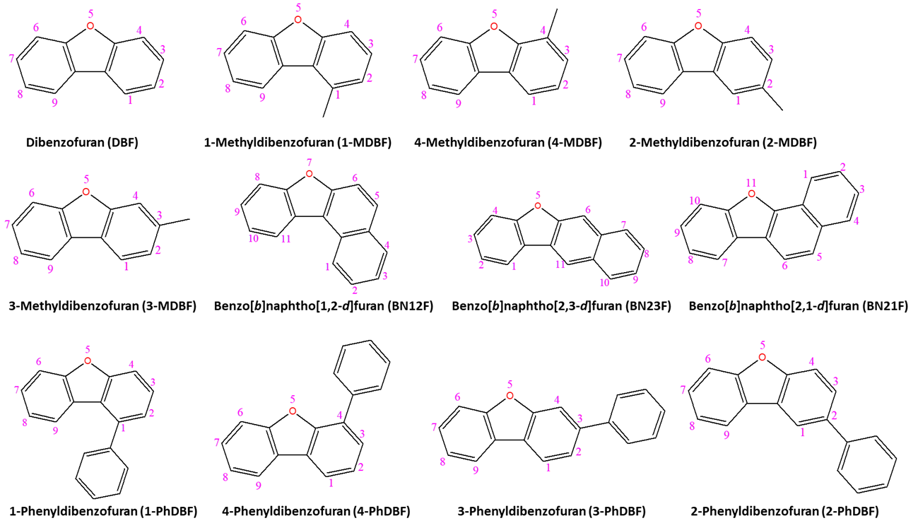 图1 地质体中常见二苯并呋喃(DBF)及其衍生物