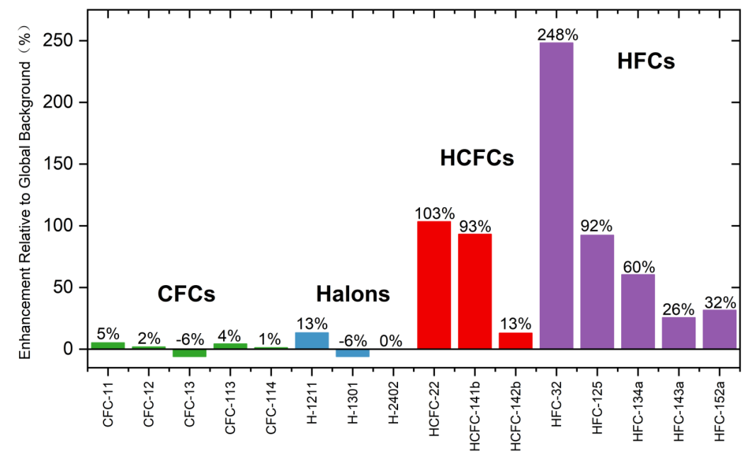 在气候变暖、空调保有量增长背景下,这些CFCs替代产物排放可能进一步加剧。高时间分辨率长期监测一方面可验证区域减排成效,而在重点城市或工业区开展这种监测,还能及时发现排放方面的新问题新动向,为有效监管与核算提供支撑,有助于生产、消费、回收与安全销毁等环节的“全链条”减排。