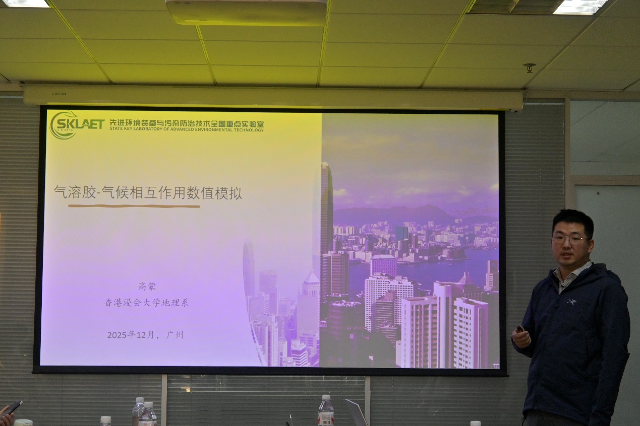 最后,香港浸会大学地理系高蒙教授围绕“气溶胶–气候相互作用的数值模拟”作专题报告,介绍了气候变化对气溶胶污染形成与演变的作用,以及气溶胶通过辐射和云过程反馈影响区域气候的研究进展。相关研究从数值模拟角度深化了对气溶胶–气候耦合机制的认识,对理解极端污染事件和气候变化背景下的大气环境问题具有重要意义。
