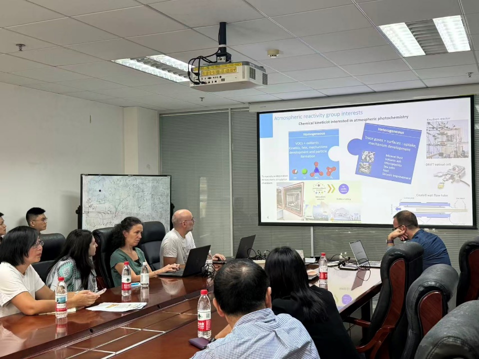 Manolis Romanias副教授以 “From roads to the air: the role of asphalt pavements on urban air quality”为题,探讨沥青路面对二次有机气溶胶(SOA)的生成影响,发现温度,湿度及阳光照射会增加沥青路面的总排放从而对空气造成污染。Adrien Gandolfo以 “A 1D chemistry–transport modeling study of NO2 deposition and ozone formation in urban environments” 为题,介绍了城市环境中NO2沉积和臭氧形成的一维化学传输模型,提出对流层臭氧形成是非线性的,并依赖于多个复杂因素。随后Liselotte Tinel以 “Shipping emissions: sources, atmospheric processes, and environmental impacts” 为题,探究了Dunkirk港口的轮渡排放的新鲜烟羽,发现其主要以NO和NO2为主,SO2排放符合SECA燃料硫含量标准,超细颗粒物对船舶烟羽中总PM有显著贡献,并对 68 种挥发性有机化合物进行了分类估算,主要贡献来自含氧有机化合物和环烷烃及烷烃,但总体对总挥发性有机物质量的贡献较低。报告引起了我室师生的广泛兴趣和热烈讨论。